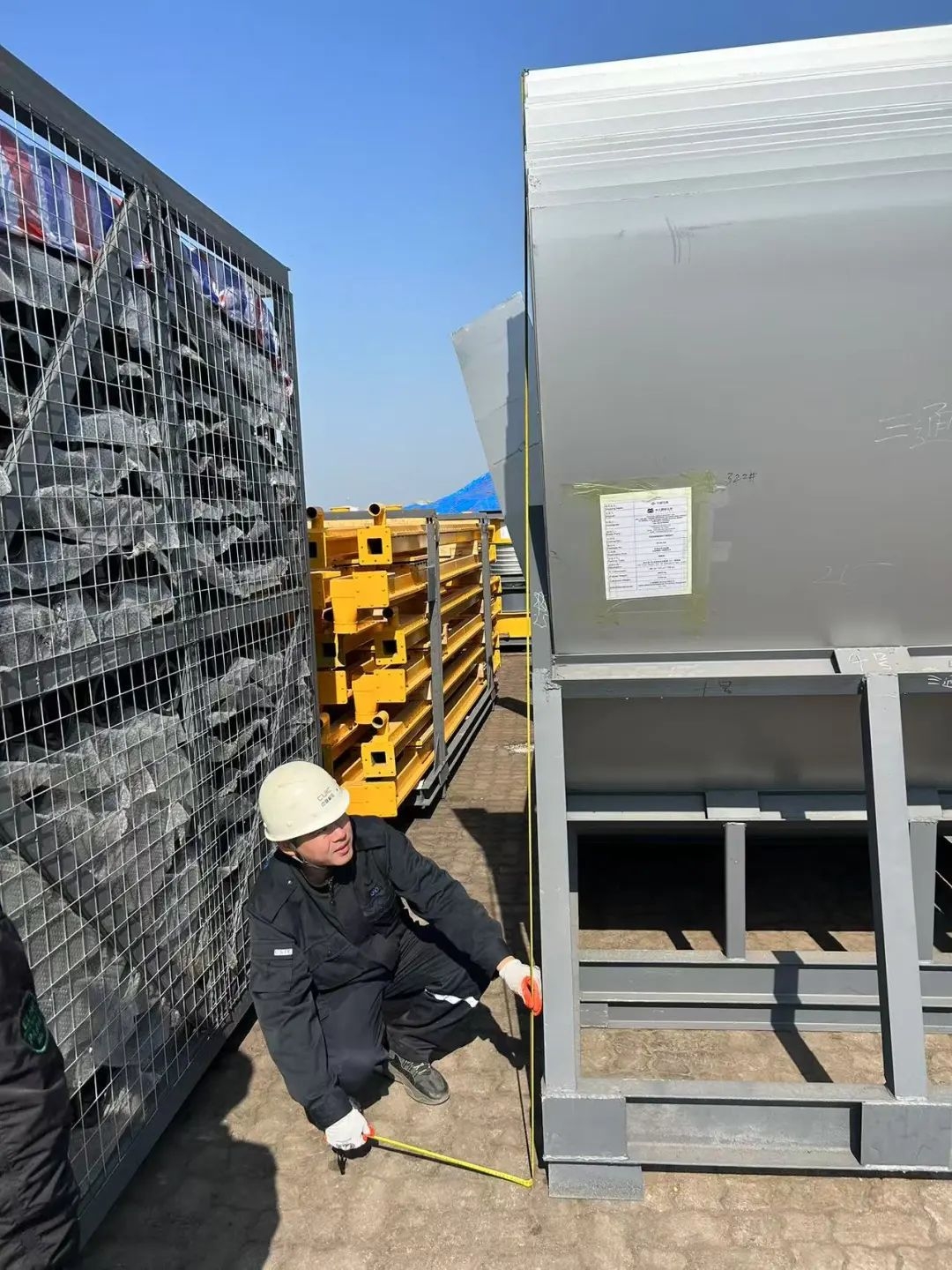 烟台区域检验团队创新性地采用分模块测量、多点定位记录的方法,借助高精度激光测距仪、钢卷尺及三维测量工具,严格遵循“满尺量”“逢大量”的货物尺码丈量原则,对设备的长度、宽度、高度及突出部位等关键数据进行逐一丈量核对,真实准确地记录每一件货物的三维尺寸。并对丈量过程中发现与原始数据存在差异的货物进行拍照存档,以增强可追溯性。