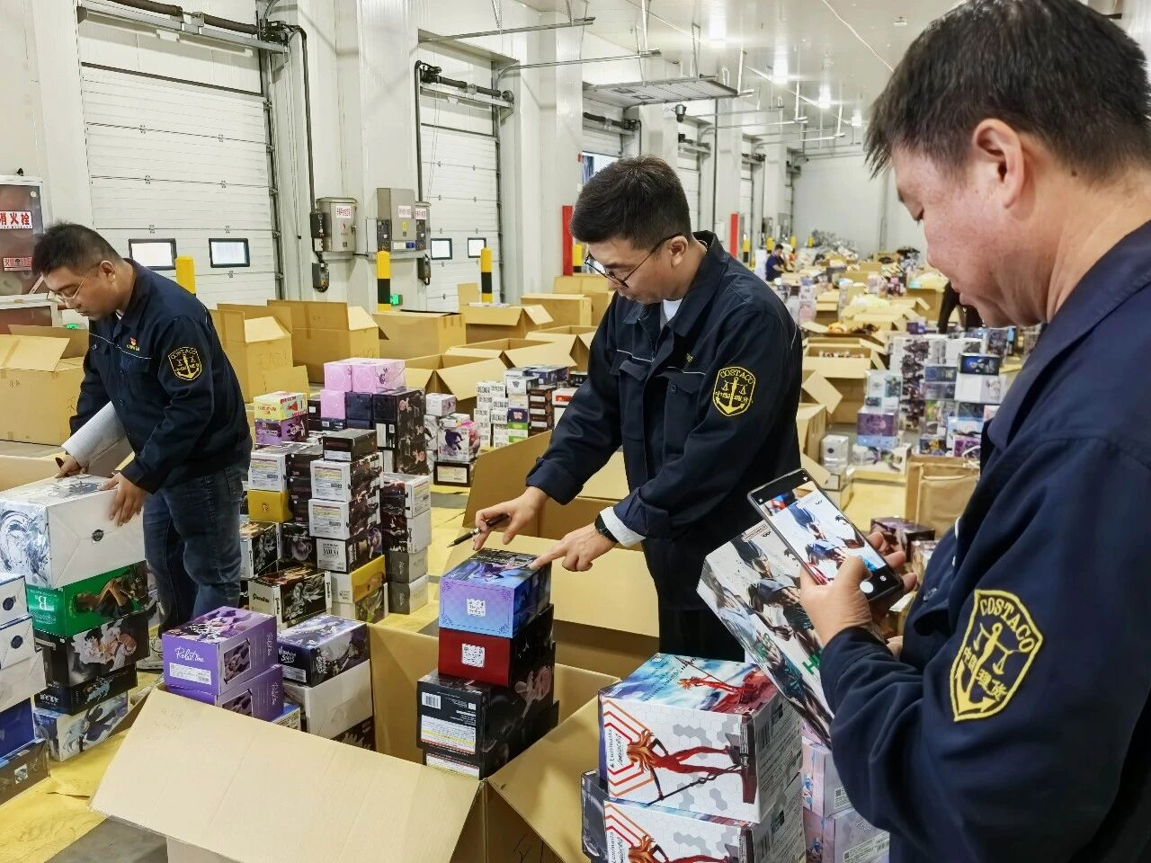▲ 集装箱装载的各类手办玩具、毛绒玩具、模型以及配件造型各异、细小繁多,给核验工作带来了极大挑战