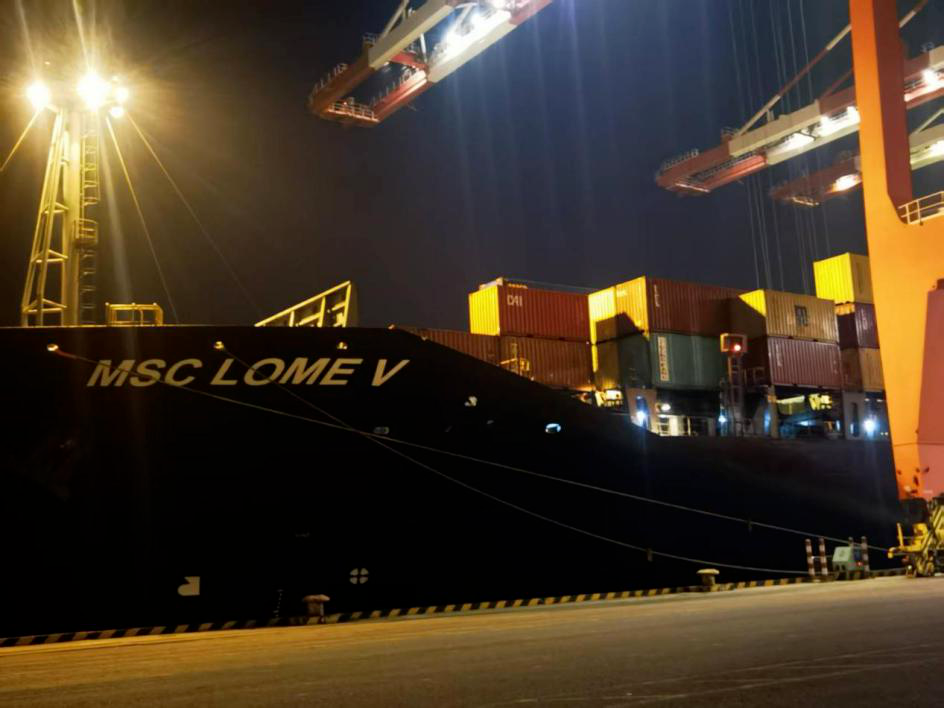 12月6日凌晨0时,搭载着约370个集装箱、近8000吨智利车厘子的“地中海洛美五号”轮顺利靠泊南沙三期码头。