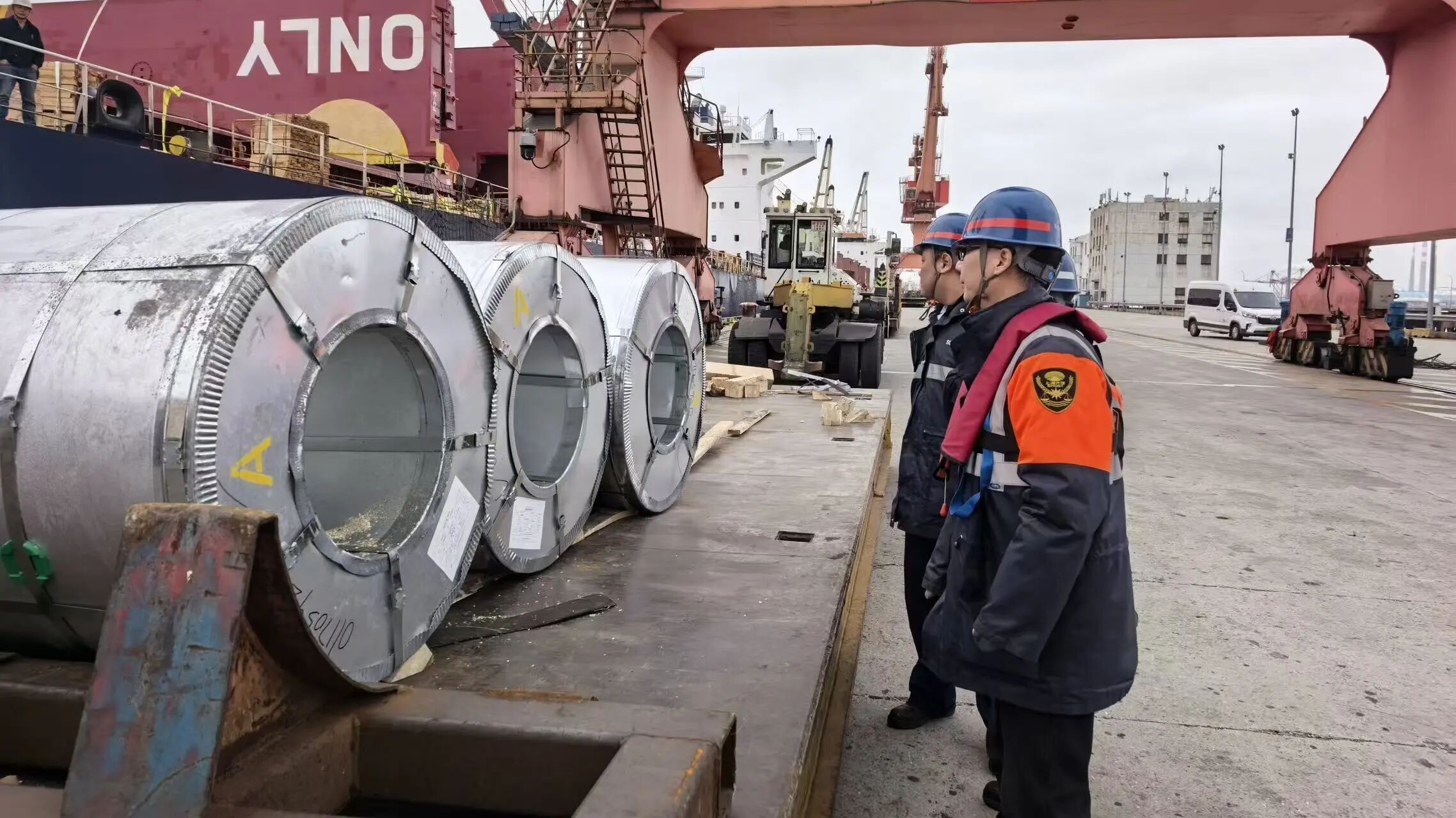 作业期间,班子成员靠前指挥,理货人员坚持“逐票核对、逐件验残”,在同类别货物中精准挑拣退关卷钢;实时梳理动态货物数据,确保数据与实物严丝合缝。