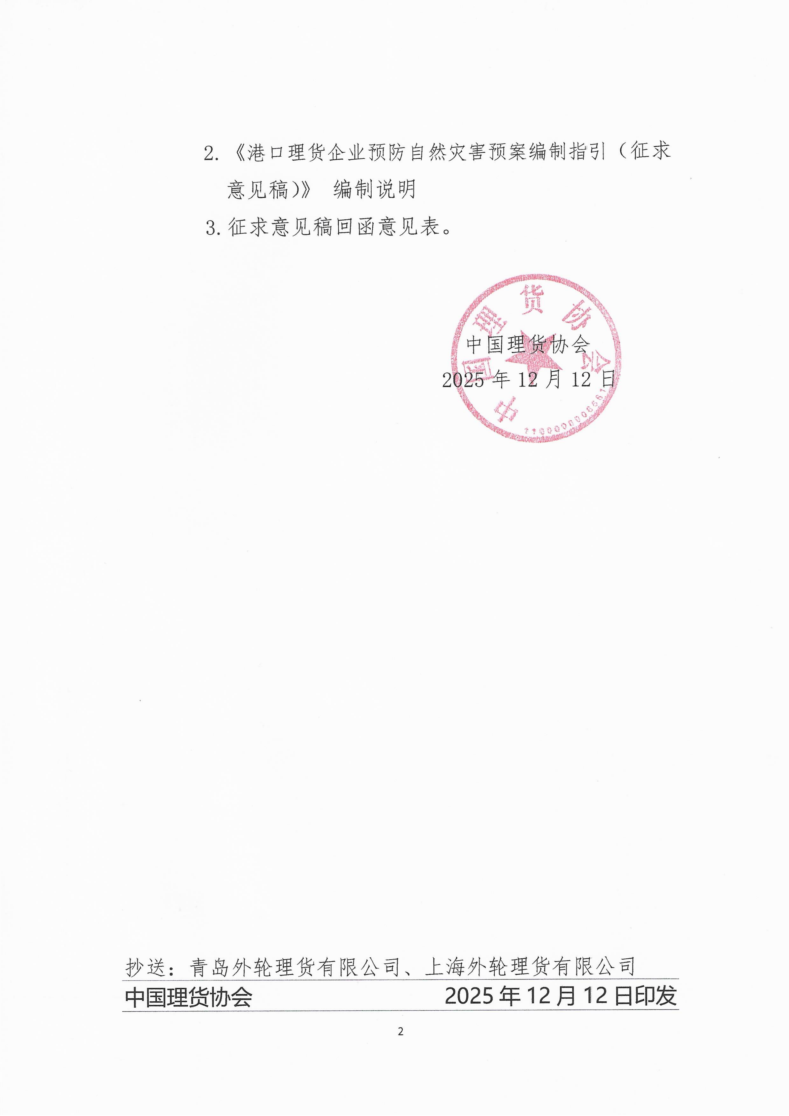 关于征求团体标准《港口理货企业预防自然灾害预案编制指引》意见的通知