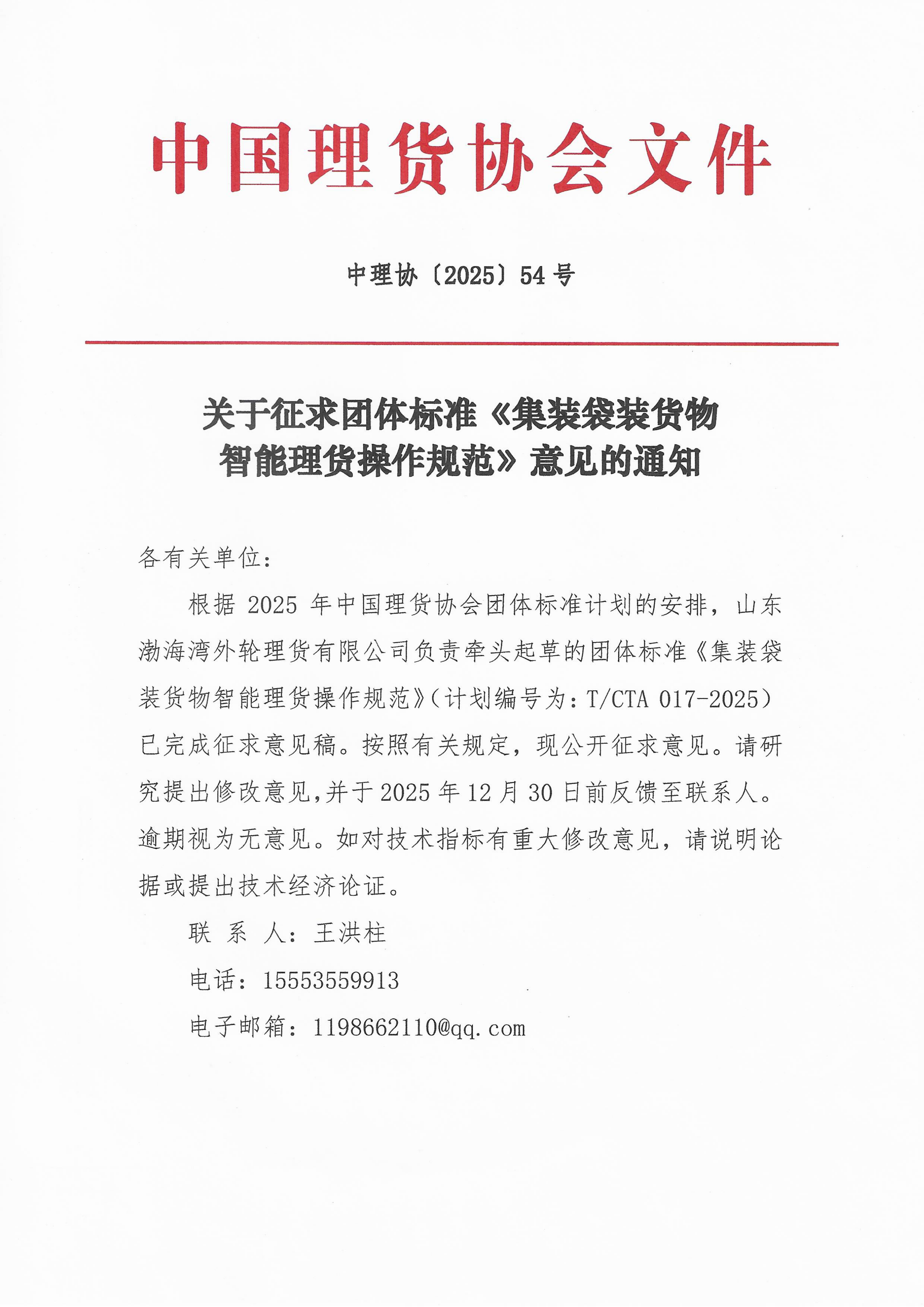 2025054关于征求团体标准《集装袋装货物智能理货操作规范》意见的通知